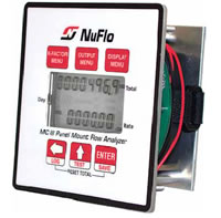 The NUFLO MC-III panel mount flow totalizer offers state-of-the art liquid and gas measurement with data logging and Modbus? communications in an easy-to-use totalizer with a standard 1/4-DIN mount. With the capacity to record up to 384 daily flow logs, 768 hourly logs, and 345 event logs, the MC-III panel mount is a powerful addition to any flow measurement operation.