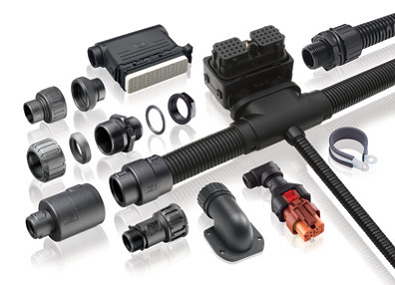 Harnessflex non-metallic connector to conduit interfaces are designed to protect against high pressure wash-down, excessive cable strain and mechanical abrasion, which are identified as the principal causes of vehicle electrical system failures.