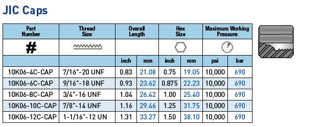 7/16" - 20 UNF, 9/16" - 18 UNF, 3/4" - 16 UNF, 7/8" - 14 UNF, 1-1/16" - 12 UNF, 1" - 12 UNF, 1-5/16" - 12 UNF, 13/16" - 16 UNF, 3/4" - 14 NPSM, 1-3/8" - 12 UNF, 1/4" H.P., 3/8" H.P., 9/16" H.P., 1/8" - 27 NPT, 1/4" - 18 NPT, 3/8" - 18 NPT, 1/2" - 14 NPT, inch |