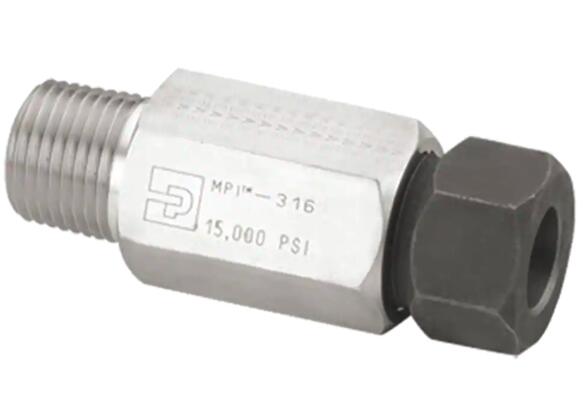 派克MPI接头是反置双卡套接头. 它们的设计和制造为整个行业提供了安全、牢固、防泄漏的连接,包括海上石油和天然气开发平台、研究实验室和其他工作压力范围在6,000 到 15,000 psi 的设施.MPI接头非常适合处理流体、气体或化学品,可用于多种管材,包括冷拔–1/8 硬(退火)不锈钢管 , 退火2507 无缝钢管或仪表级薄壁退火不锈钢。每只 MPI? 接头是可装配的整体套件.Parker's MPI Series is an inverted two ferrule design engineered and manufactured to provide secure, tight, and leak resistant connections for small bore instrumentation applications up to 15,000 PSI. Parker MPI Fittings are an inverted two ferrule, compression design. They are engineered and manufactured to provide secure, tight, and leak-resistant connections throughout industry, including off-shore oil and gas exploration platforms, research labs, and other facilities that require operating pressures in the range of 6,000 to 15,000 psi.