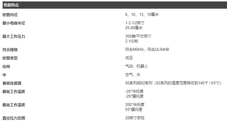- 根据SAEJ343热塑性软管的测试程序,是非导电的
