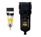 Parker's C628 is an industrial heavy duty 3-piece pipe nippled particulate filter, regulator and mist style lubricator. The C628 provides accurate pressure regulation, high moisture removal efficiency and delivers oil over a wide range of air flows.